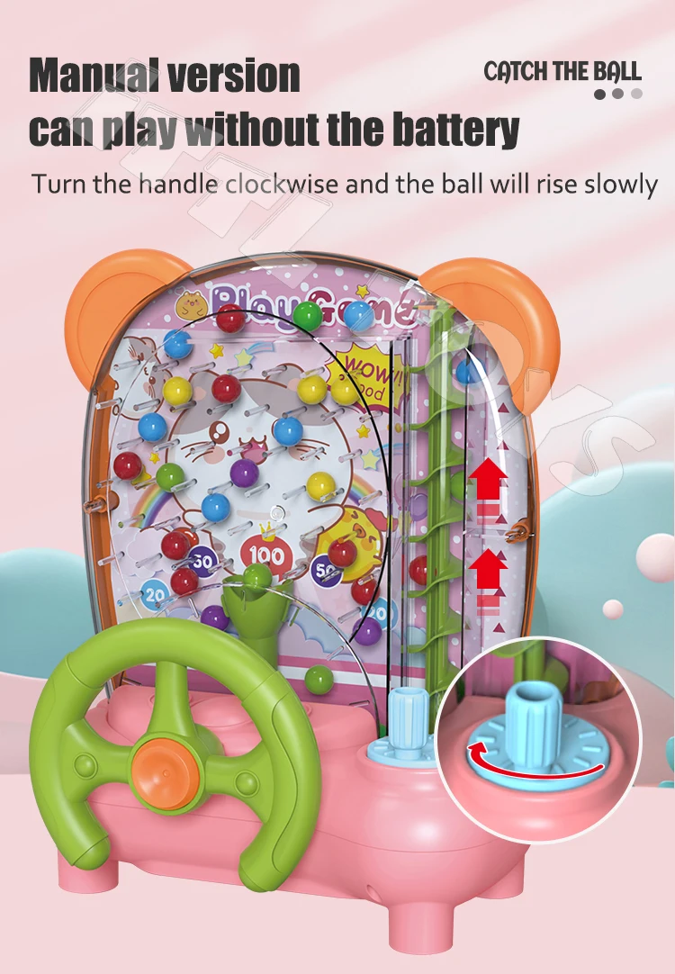 Outdoor tabletop game with rotating thinking LED light crane machine for catching balls educational toy, pinball game for children, chessboard game toy.